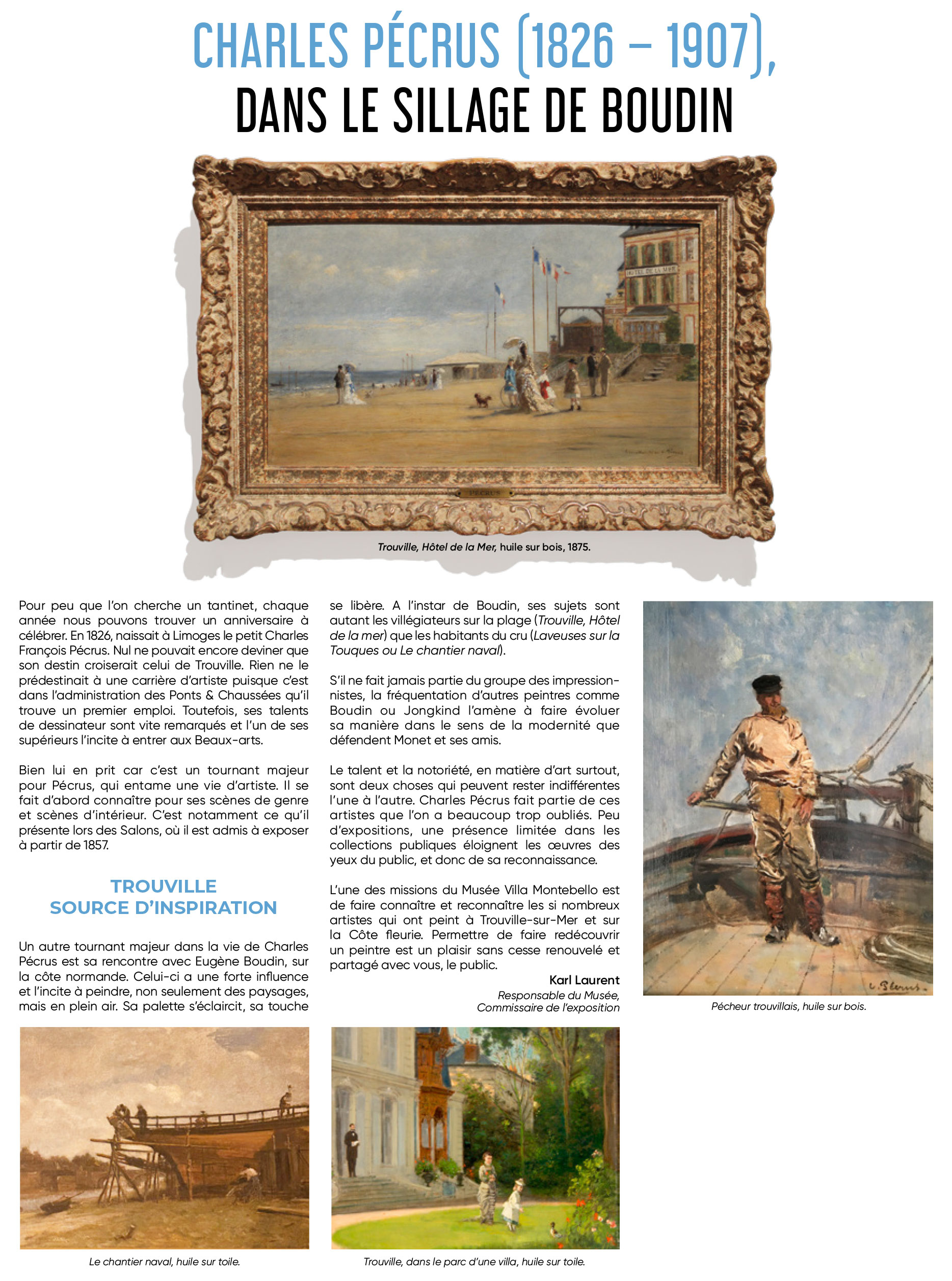 La Villa Montebello, construite en 1865 par l’architecte Jean-Louis Célinsky de Zaremba, préserve et expose depuis 1972 les collections du musée (peintures, affiches, lithographies, dessins, manuscrits, objets, vêtements…). Elles sont orientées autour de deux grandes thématiques que sont la naissance des bains de mer et le développement de la villégiature sur la Côte Fleurie, source d’inspiration des artistes du XIXème siècle à nos jours.