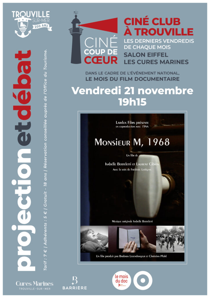 Chaque dernier vendredi du mois, Ciné Coup de Cœur propose une séance au cours de laquelle une personnalité invitée (cinéaste, écrivain, plasticien…) vient présenter son film coup de cœur choisi dans le patrimoine du cinéma ou dans la production récente. La projection du long métrage est précédée de celle d’une archive sur l’histoire de Trouville-sur-Mer et suivie d’un débat.