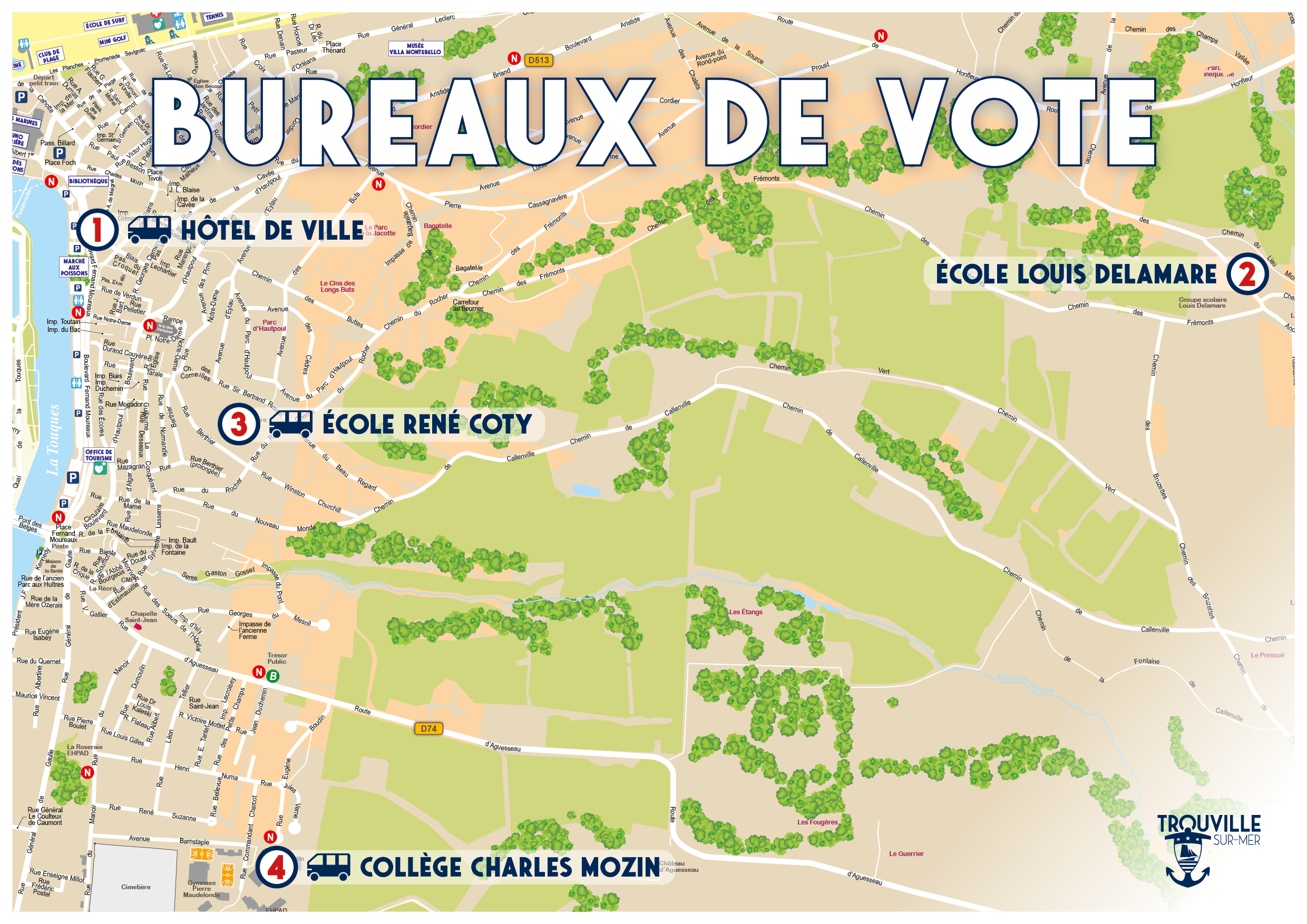 Hôtel de Ville – 164 boulevard Fernand Moureaux – 14360 Trouville-sur-Mer – 02 31 14 41 41 – contact@trouvillesurmer.fr