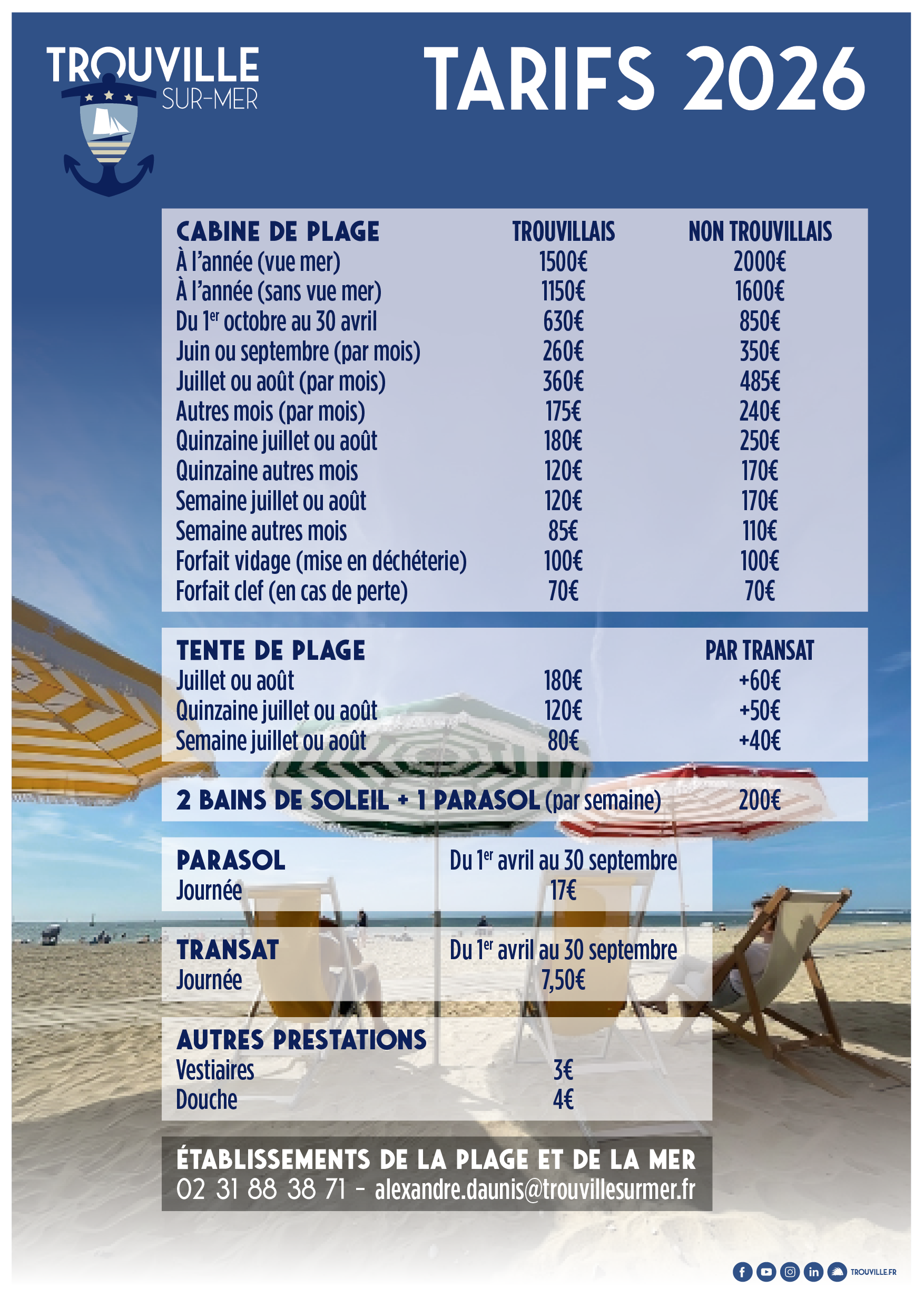 Des locations de parasols, transats ainsi que de cabines de plages sont possibles à la journée, à la semaine, pour les week-ends…