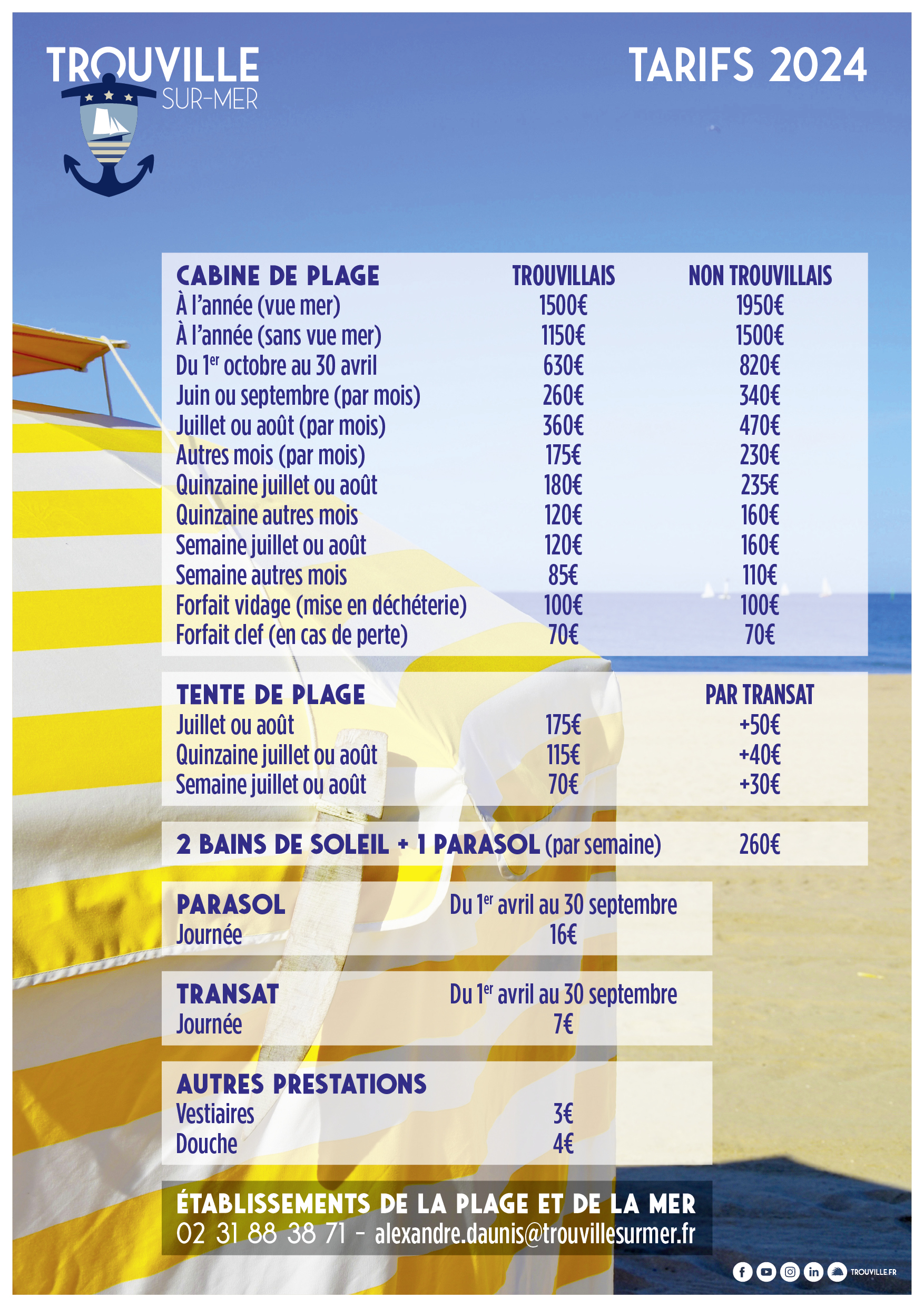 Des locations de parasols, transats ainsi que de cabines de plages sont possibles à la journée, à la semaine, pour les week-ends…