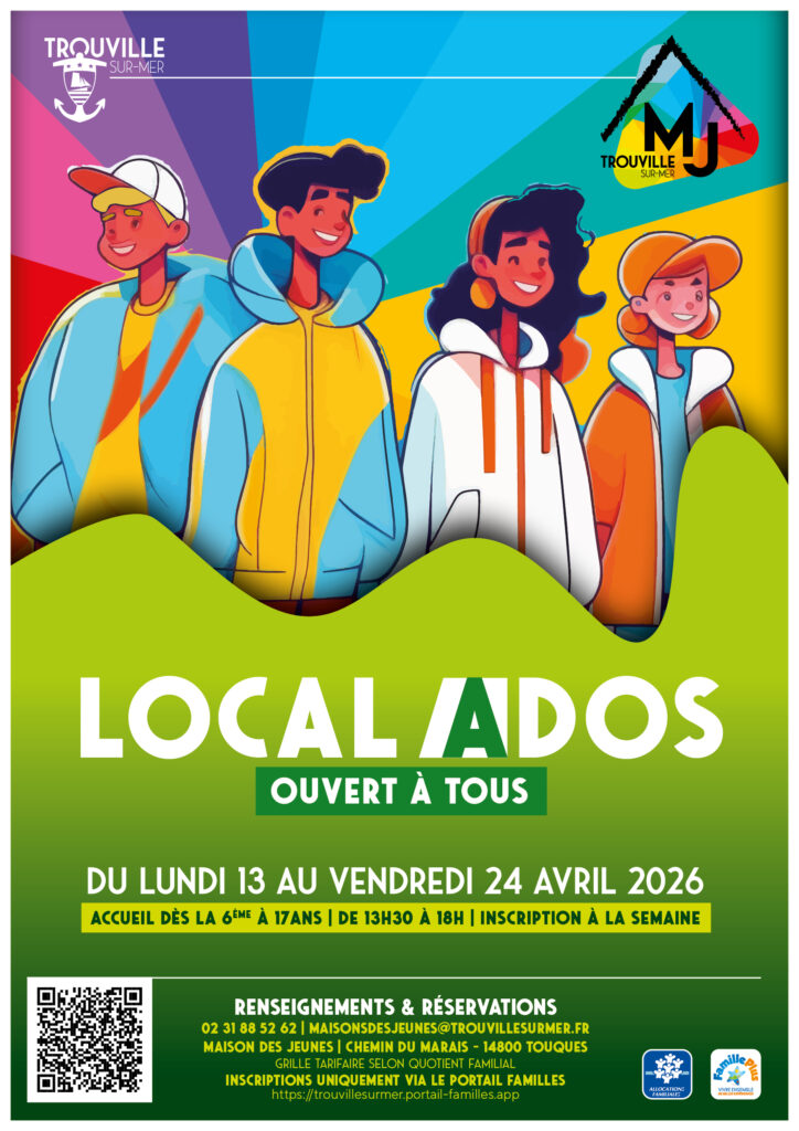 Situé à la Maison des Jeunes de Trouville-sur-Mer, chemin du marais, 14800 Touques, le centre aéré accueille les ados dès la 6ème à 17ans du lundi au vendredi de 13h30 à 18h00 pendant les vacances scolaires de la zone B. Fermé les jours fériés.